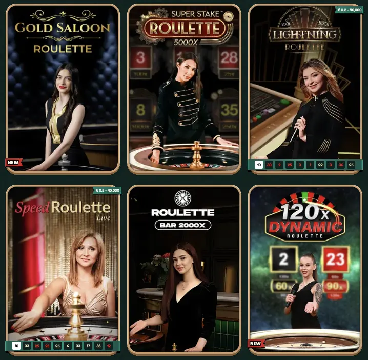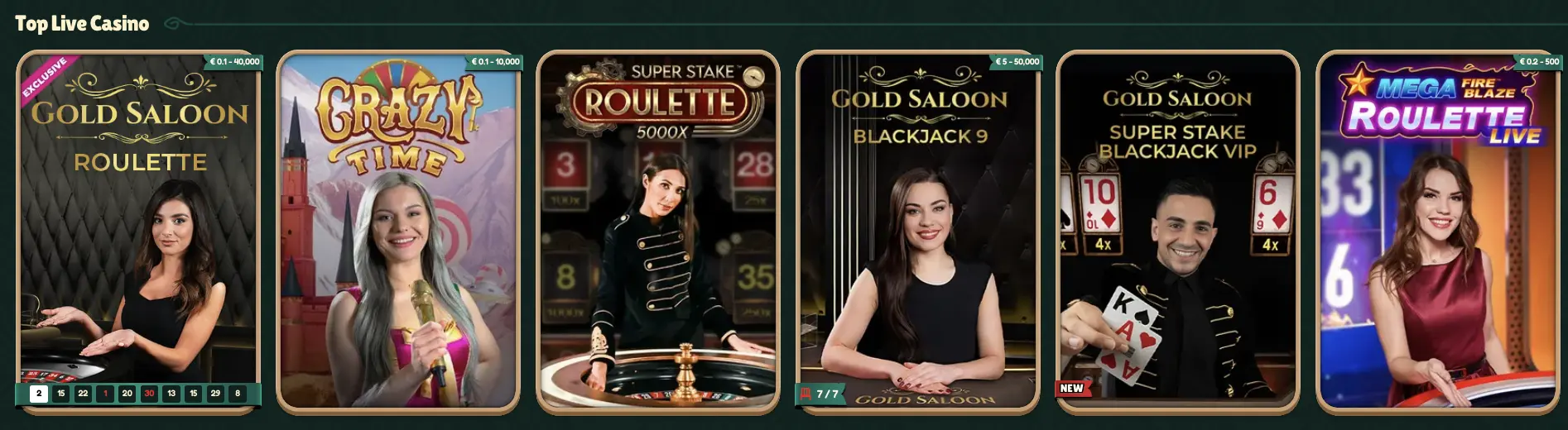 Players looking for interactive gaming can engage with game show-style live action based on popular TV formats. Examples include Deal or No Deal, Monopoly Live and Dream Catcher.